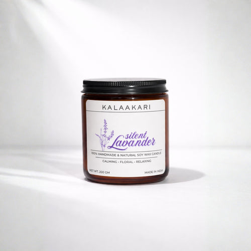 A handcrafted soy wax candle with a soft floral aroma, designed to calm the mind and create a peaceful, relaxing space.